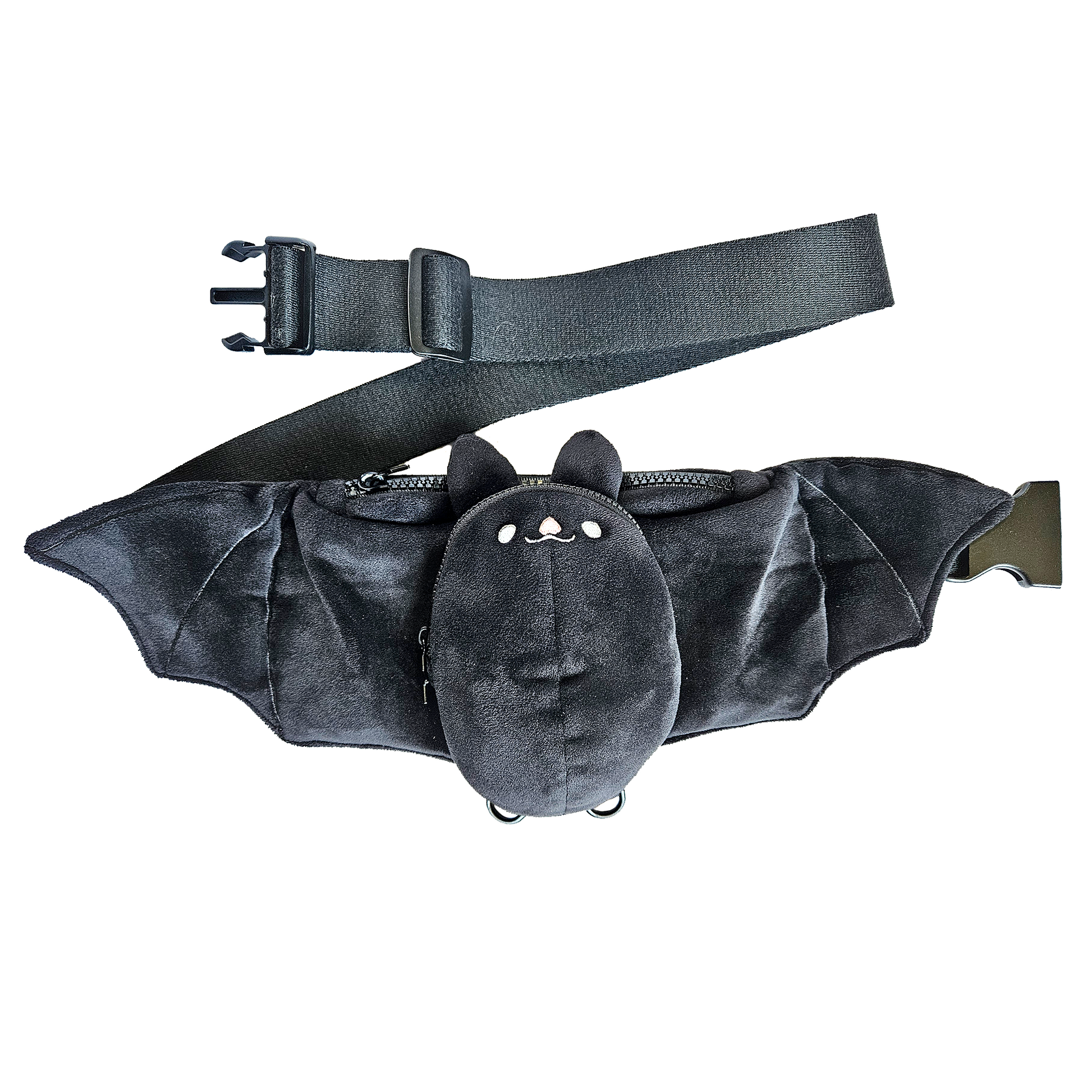 This is the cutest and softest spooky fanny pack you'll find on the internet! With embroidered face details, soft minky faux fur and a squeaker in the nose, this FANNY BAT welcomes you with open wings!